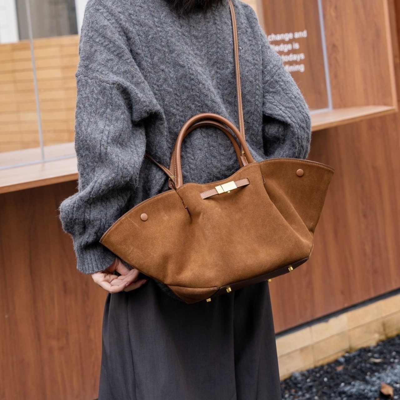 【トレンド】世界中で人気のデザイン バケツ型横長バッグ ★10/3