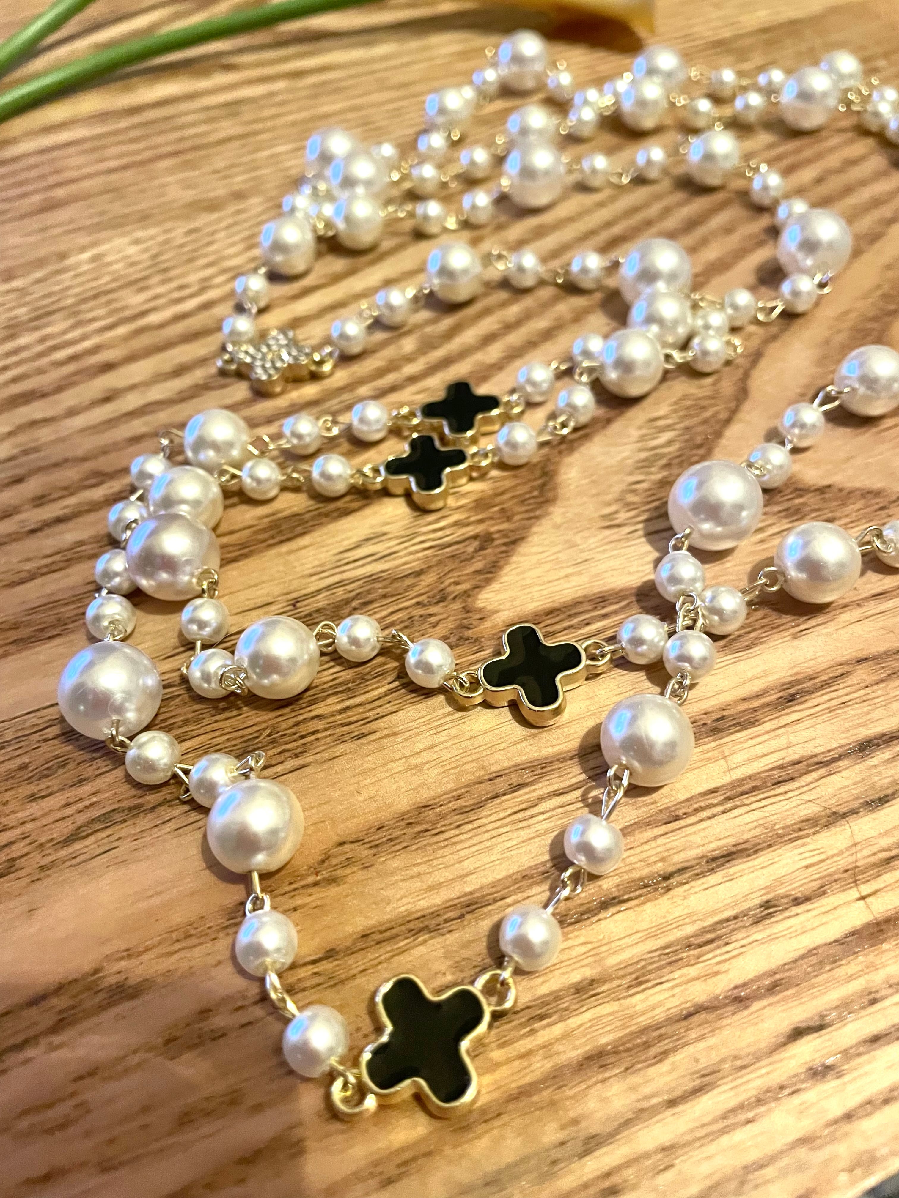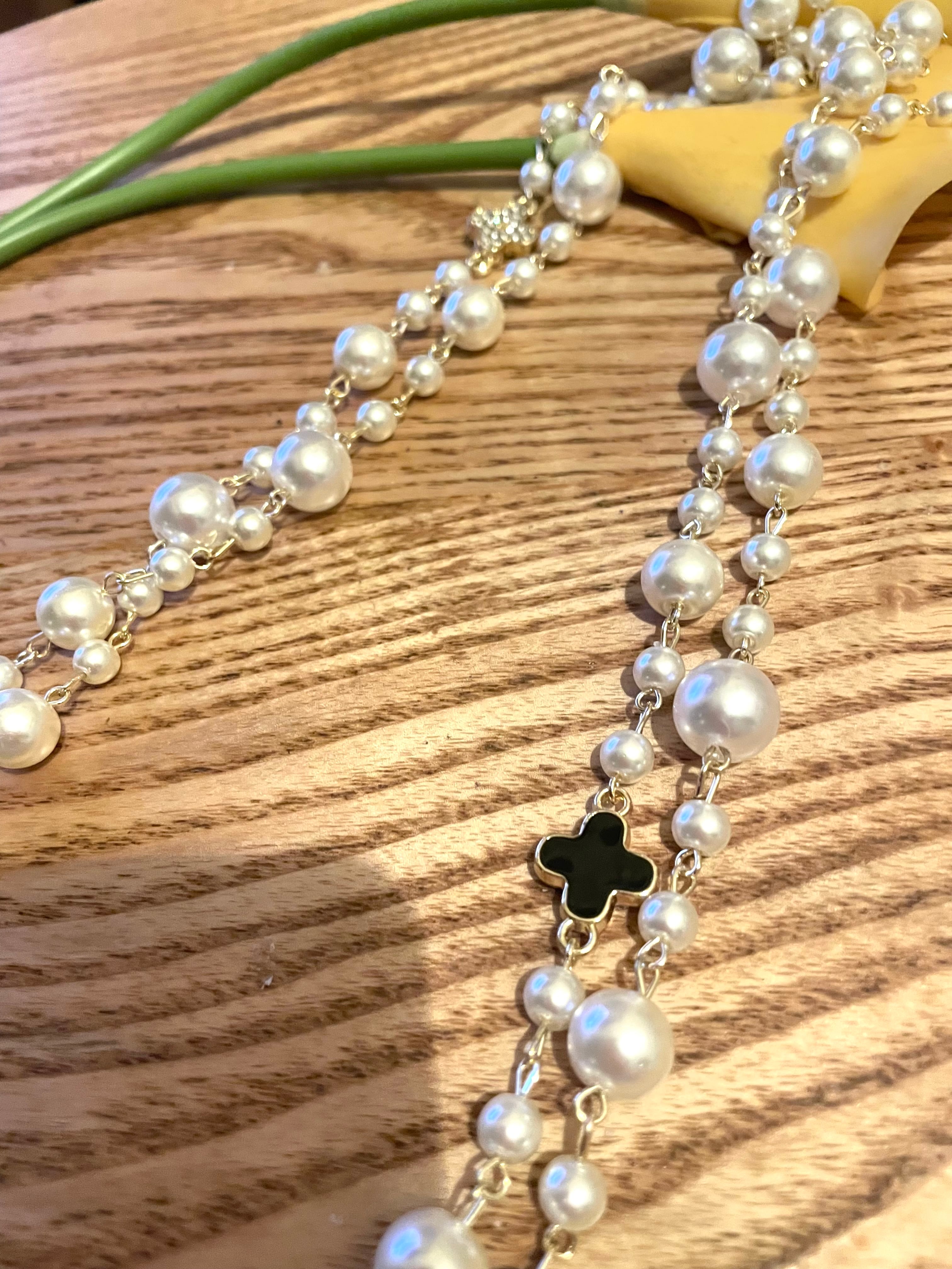 【ヨーロッパスタイル】パールロングネックレス チャーム付き華やか 11/22