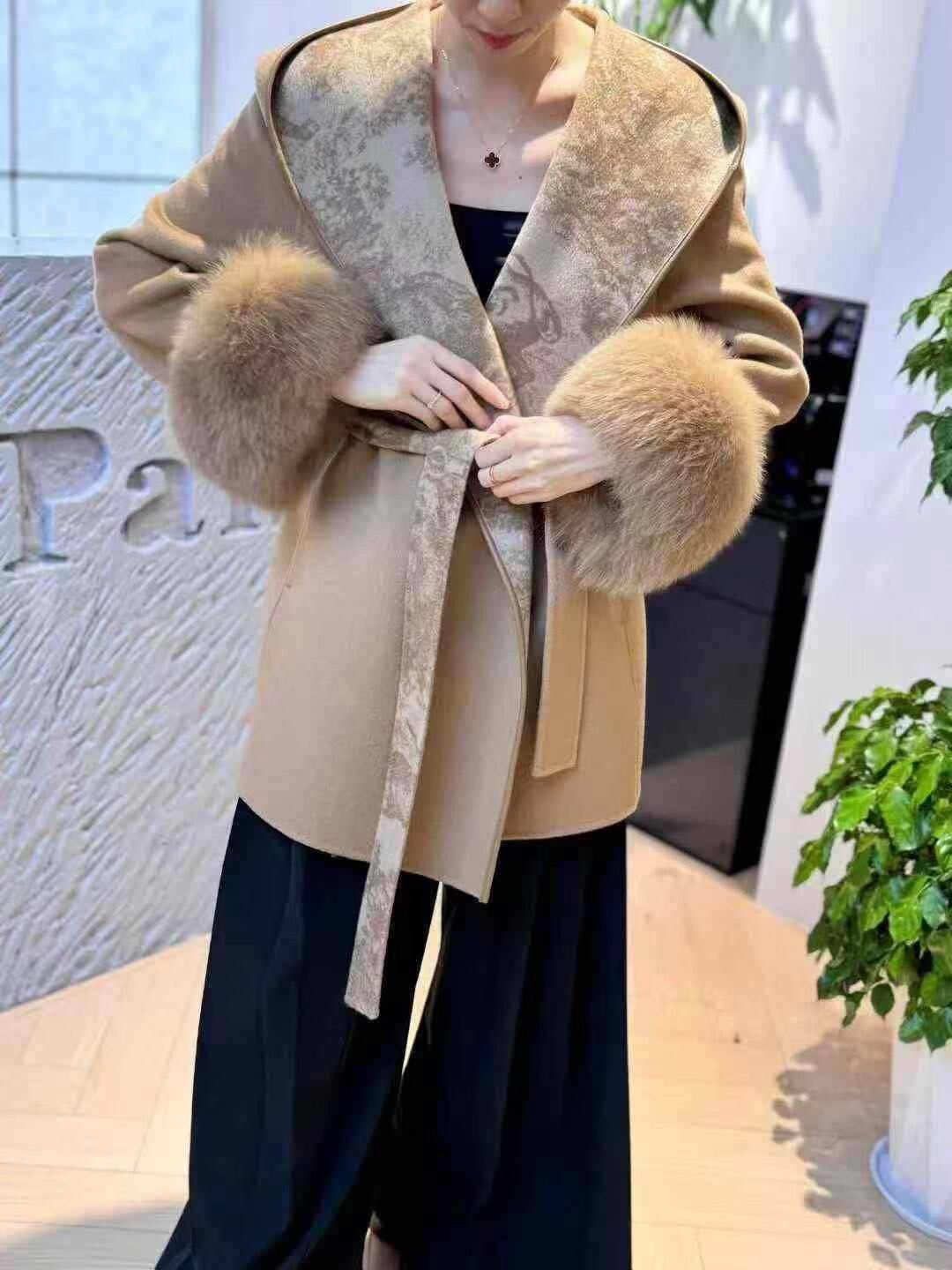 上質なFOXファー&上質ウールの巻きコート