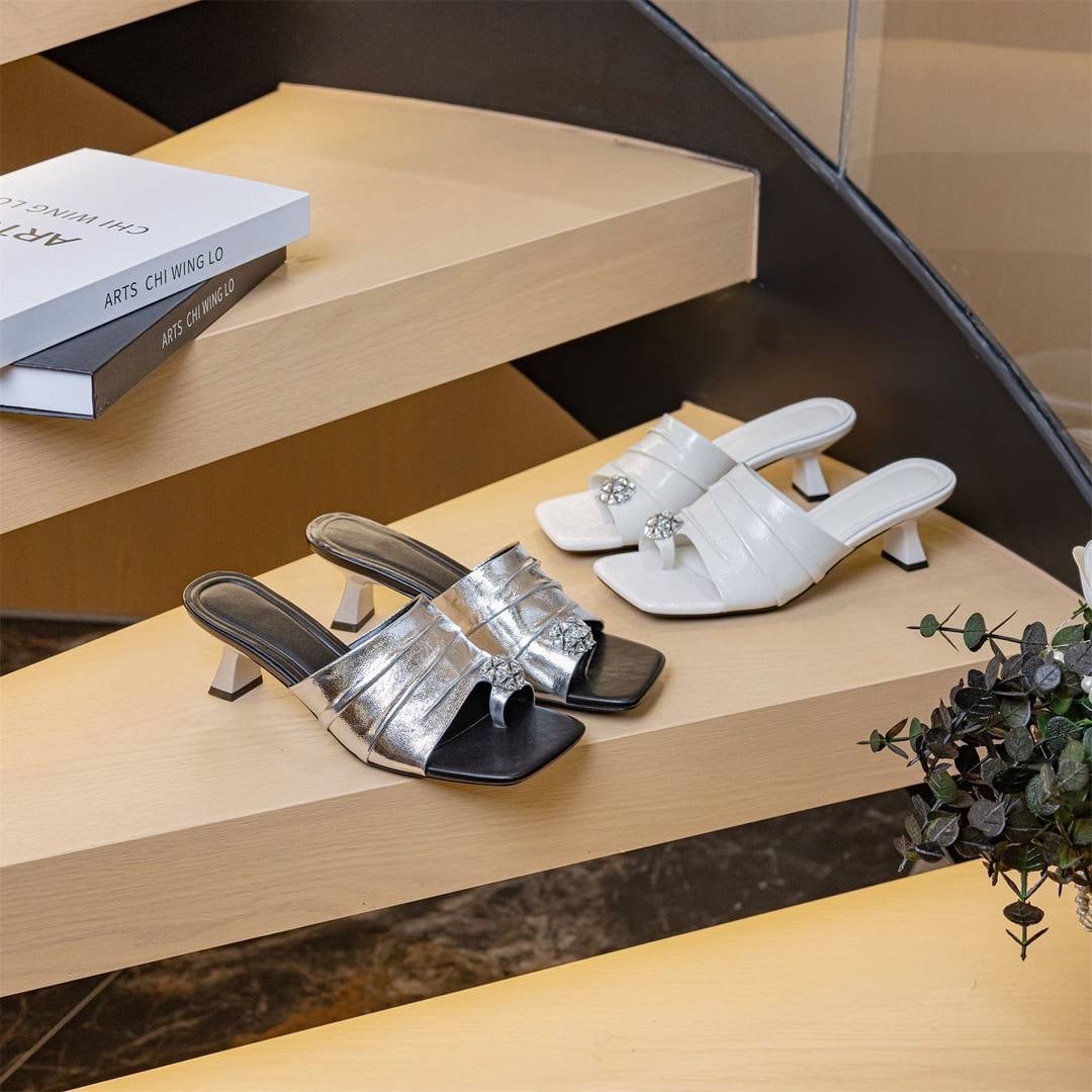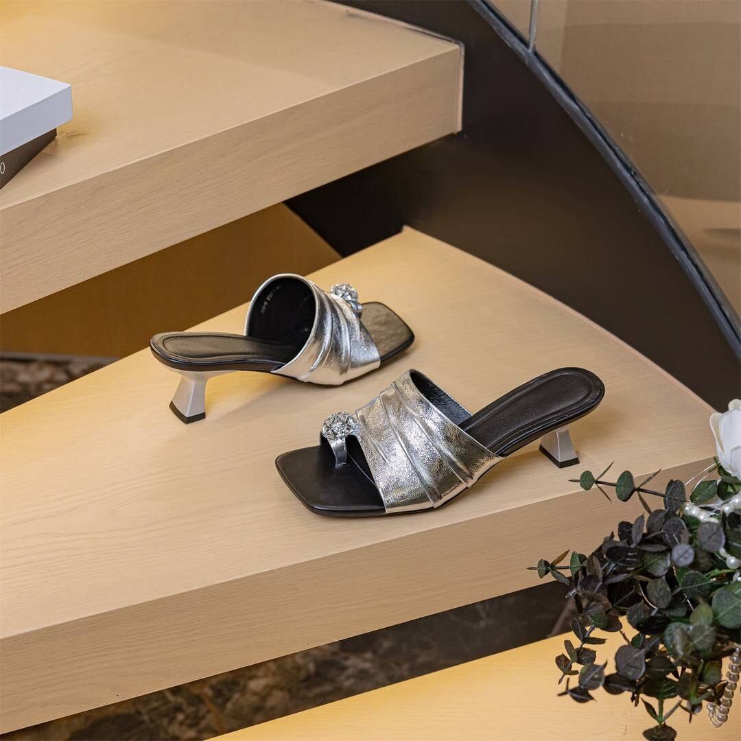 おすすめ商品:オールラム革トングサンダル キラキラ親指ラインストーン 脚長&スタイルアップが叶うヒール6.5cmサンダル 足裏にも優しいラム革下敷き使用