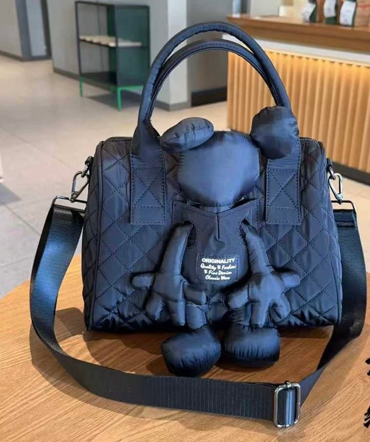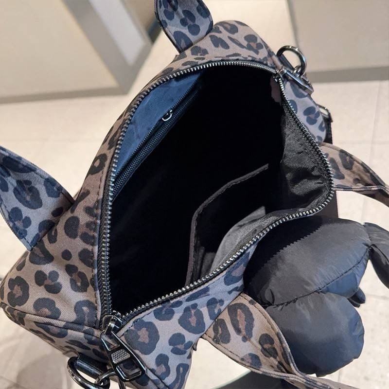 レオパード 熊ドール付き ナイロンバッグ 大人可愛い