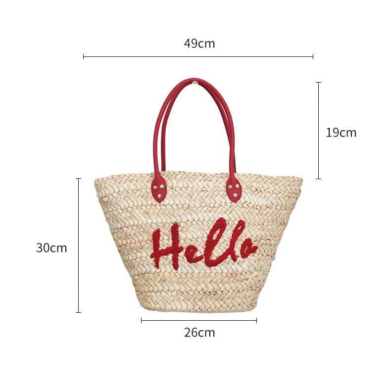 フロントの「Hello」刺繍デザインが遊び心をプラスし、持つだけでコーデのアクセントになるアイテムです。