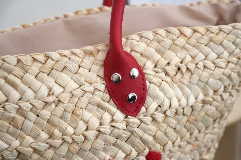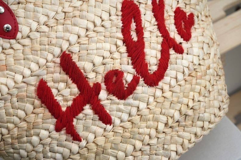 おすすめ商品:ナチュラル素材に映える赤ロゴが目を引く、季節感たっぷりのかごトートカゴバッグ。