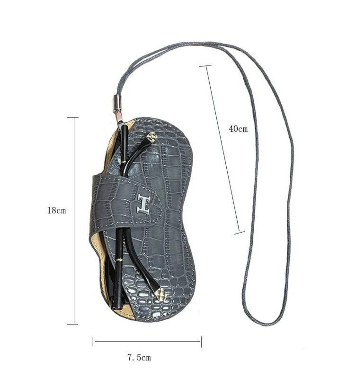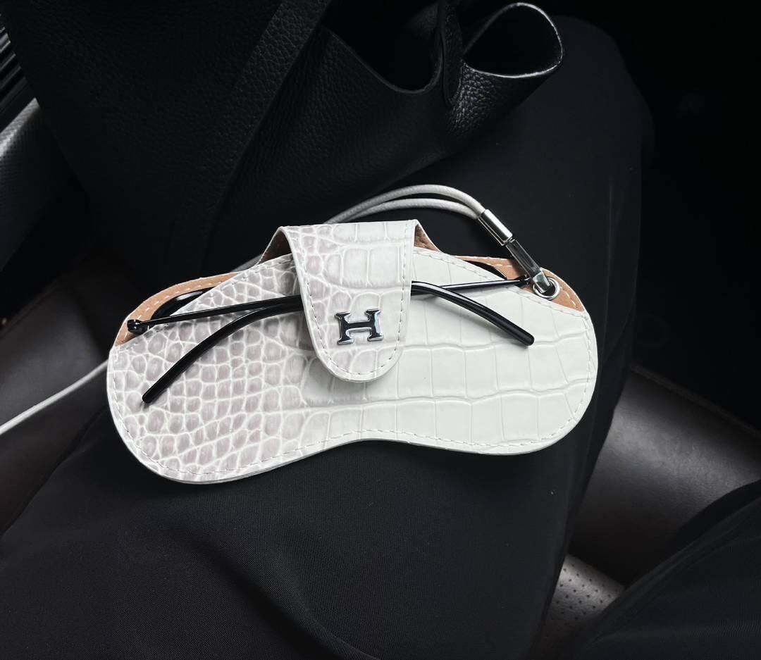 おすすめ商品:型押し牛革コンパクトメガネケス ネックレス バッグチャーム Hマーク