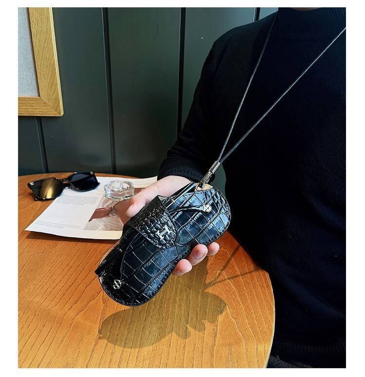 クロコダイル風レザー型押し メガネケース 男女兼用 プレゼント