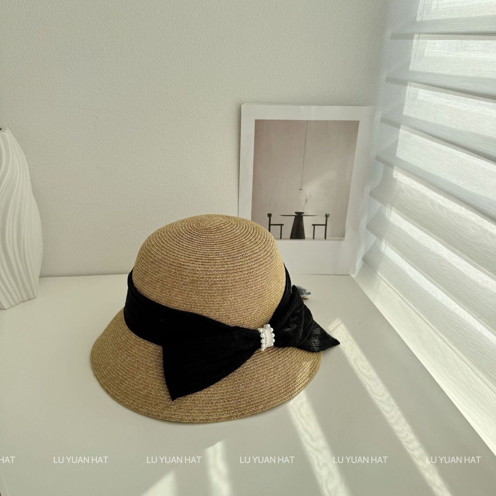 リボンハット 折りたたみ可 大人エレガント ストローハット