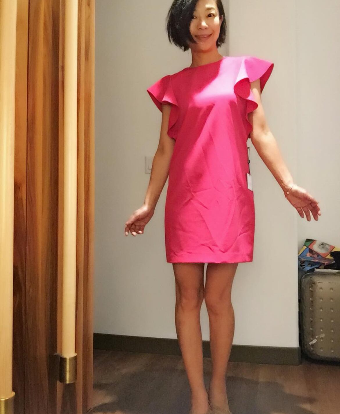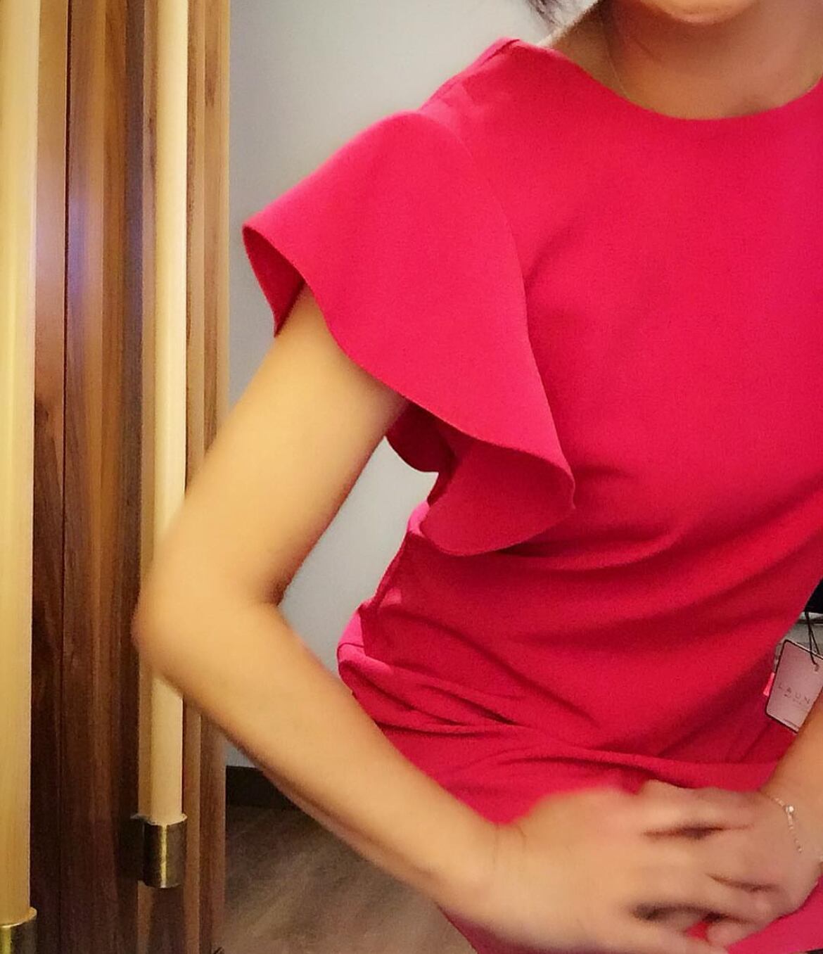 美しいマゼンダカラーのフリルワンピース
