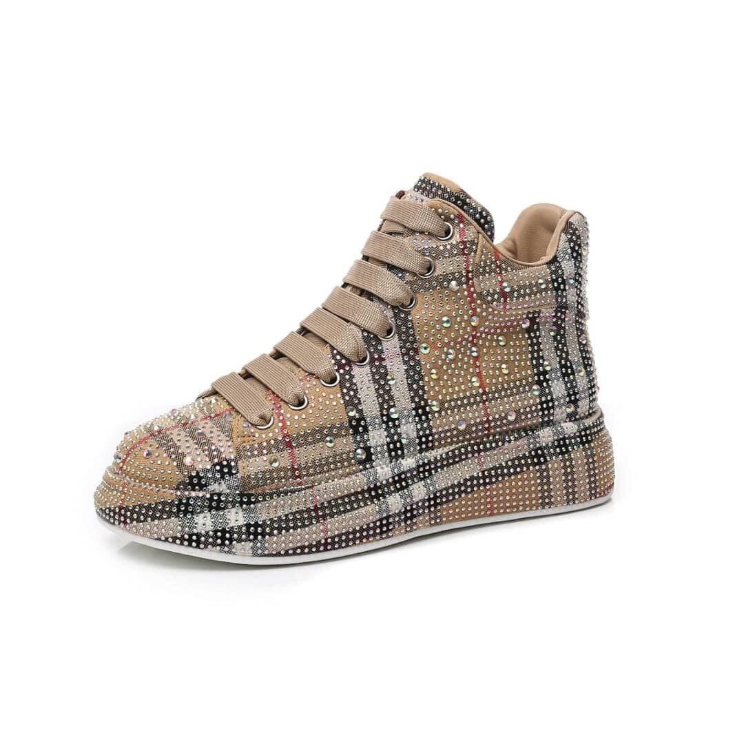 チェック キラキラ ラインストーン ハイカットスニーカー