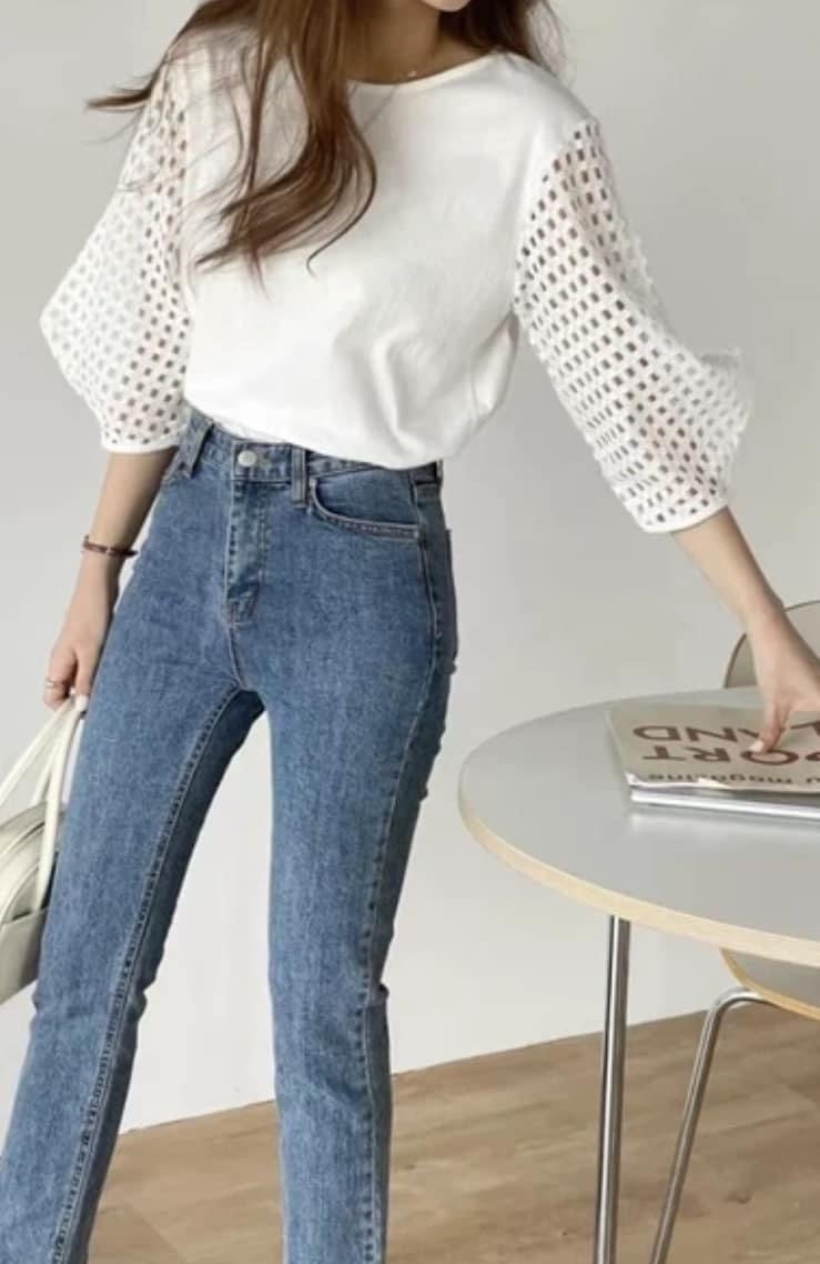 パンチング袖カットソー