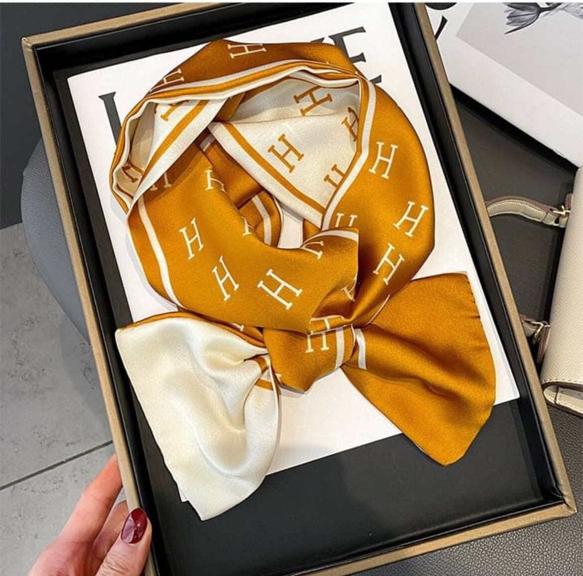 首元を華やかにするには、ニュアンス作りのスカーフ♪