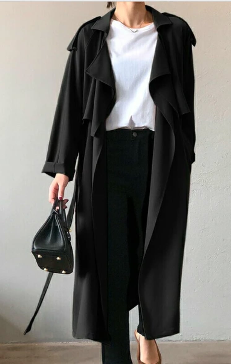 とろみ感あるしっとりなめらかな生地が上品なトレンチコート。