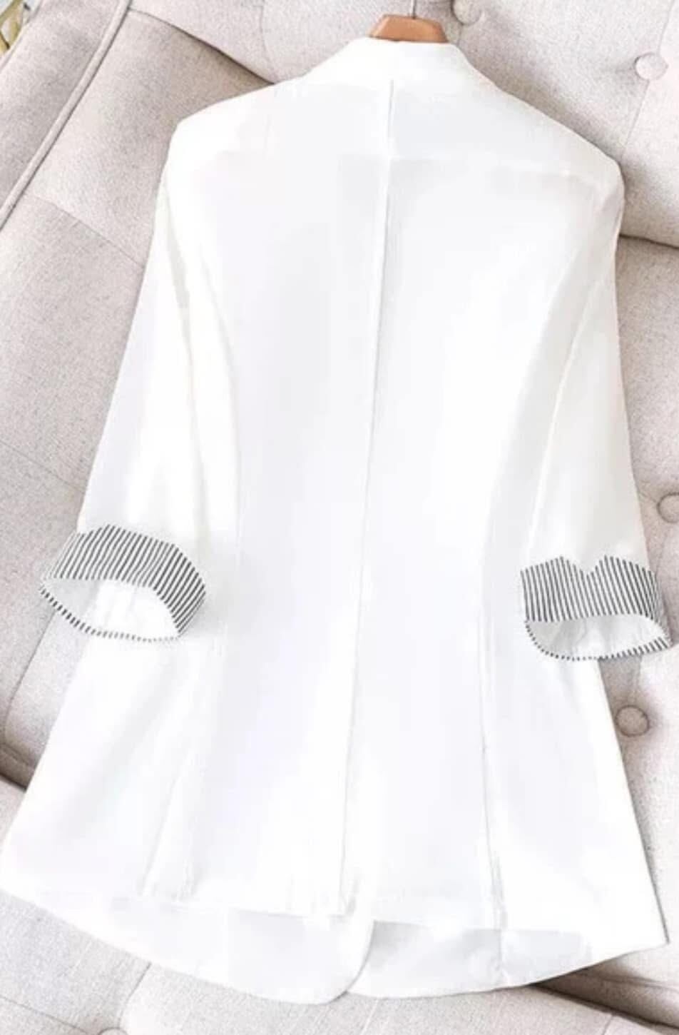 ストライプの折り返しがかっこいいのと、5分袖っていうのがなかなかないので、ほんとに春夏はめちゃくちゃ使えると思います。